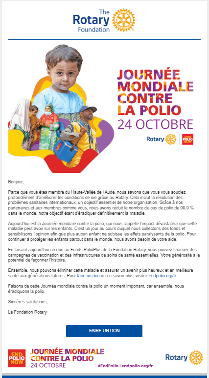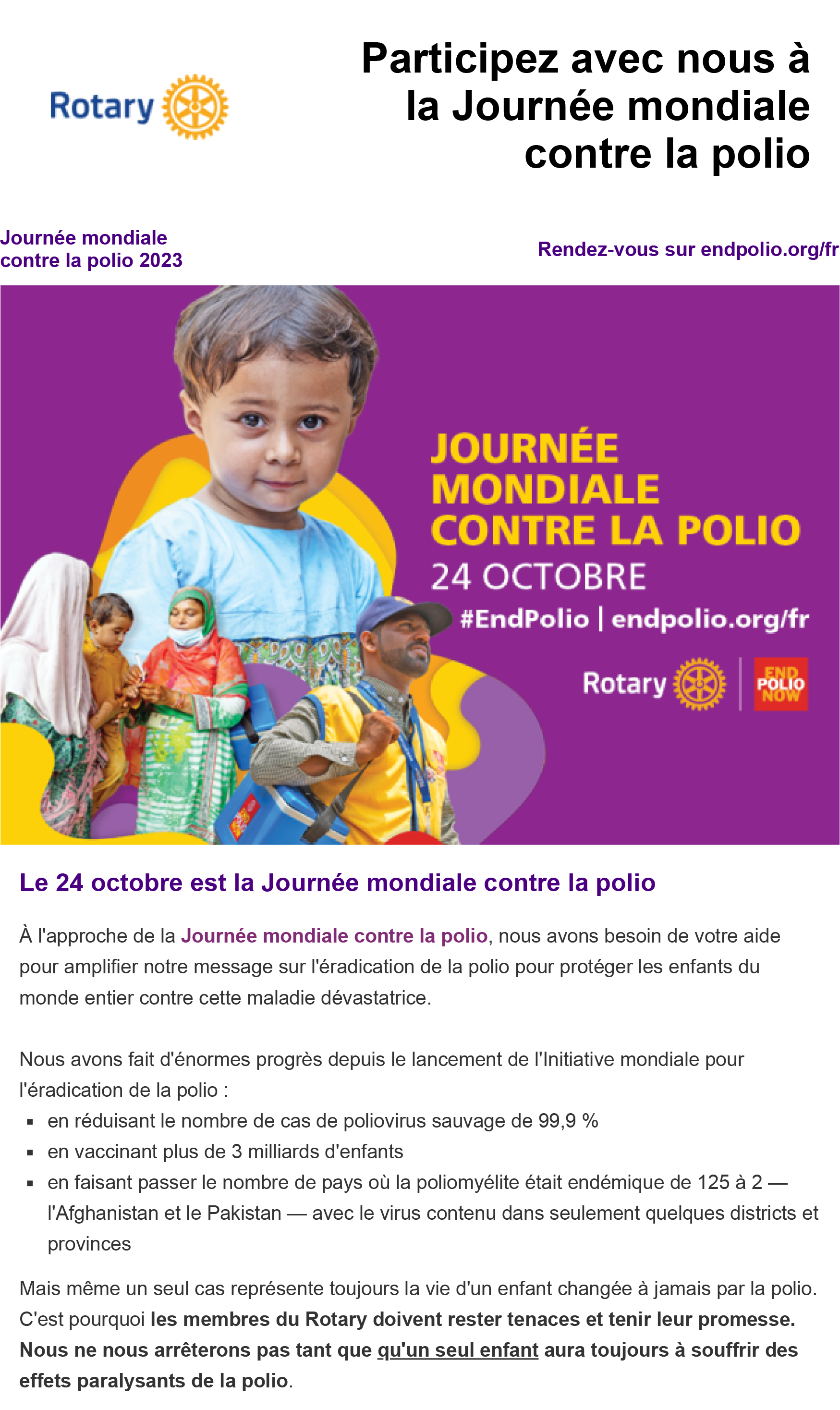 24 octobre 2023, jour dédié par les rotariens à la lutte contre la polio